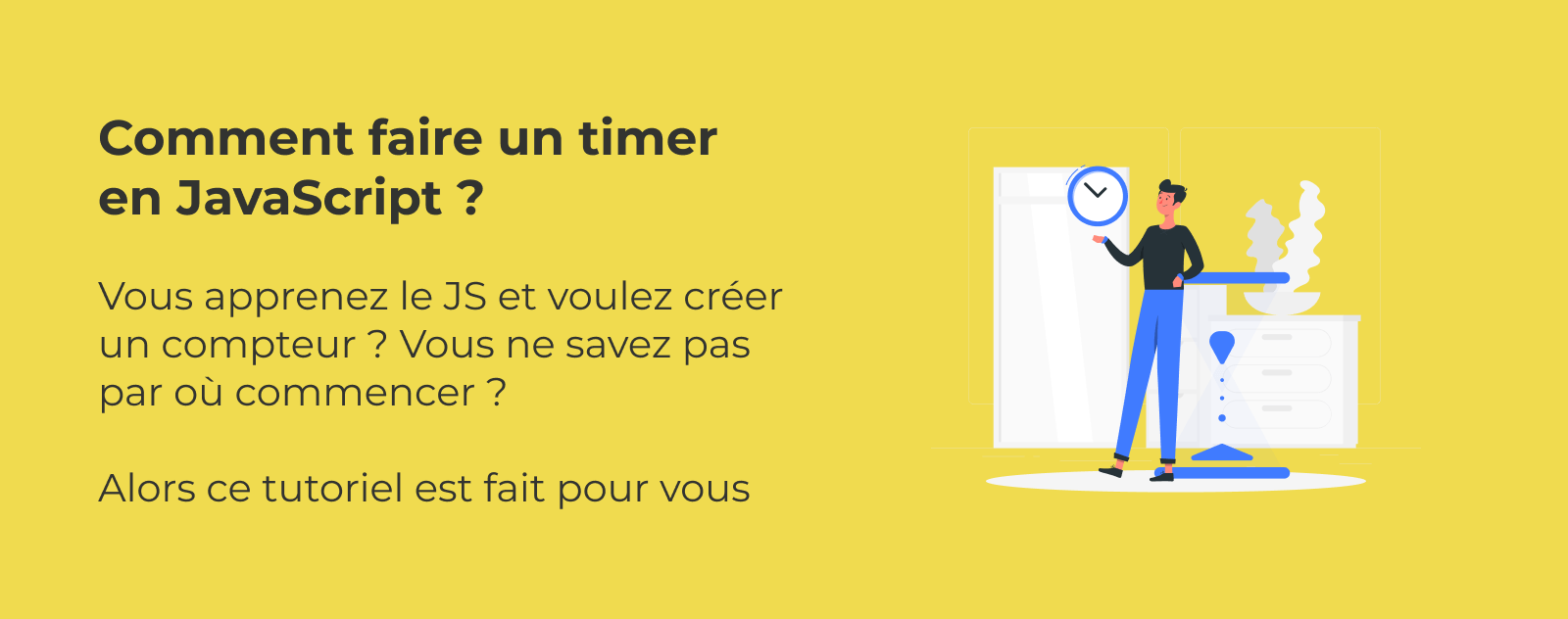 Pour créer un timer en JavaScript il faut créer une page html et y ajouter du code JavaScript pour modifier l’élement HTML souhaité. Ensuite, il faudra utiliser la méthode setInterval pour mettre notre timer à jours toutes les secondes.